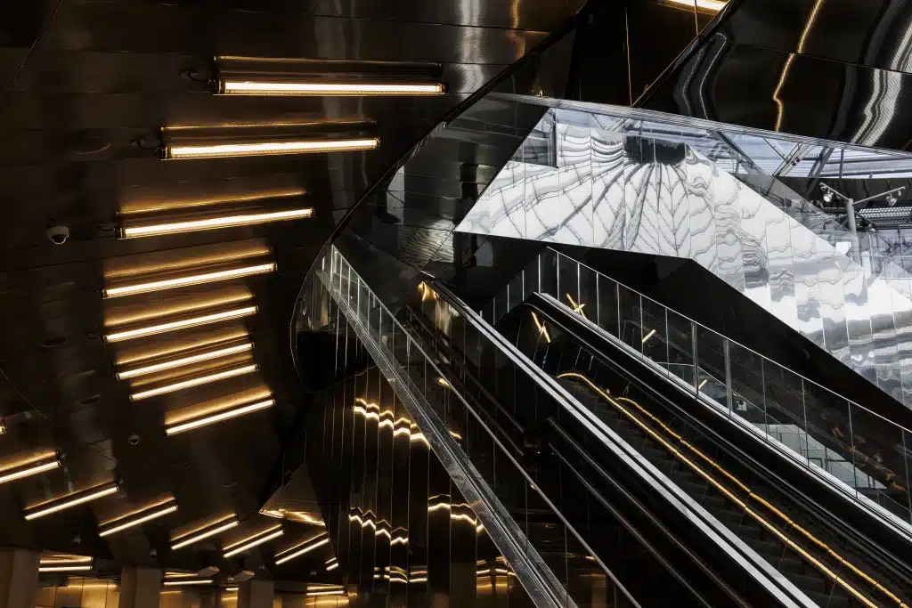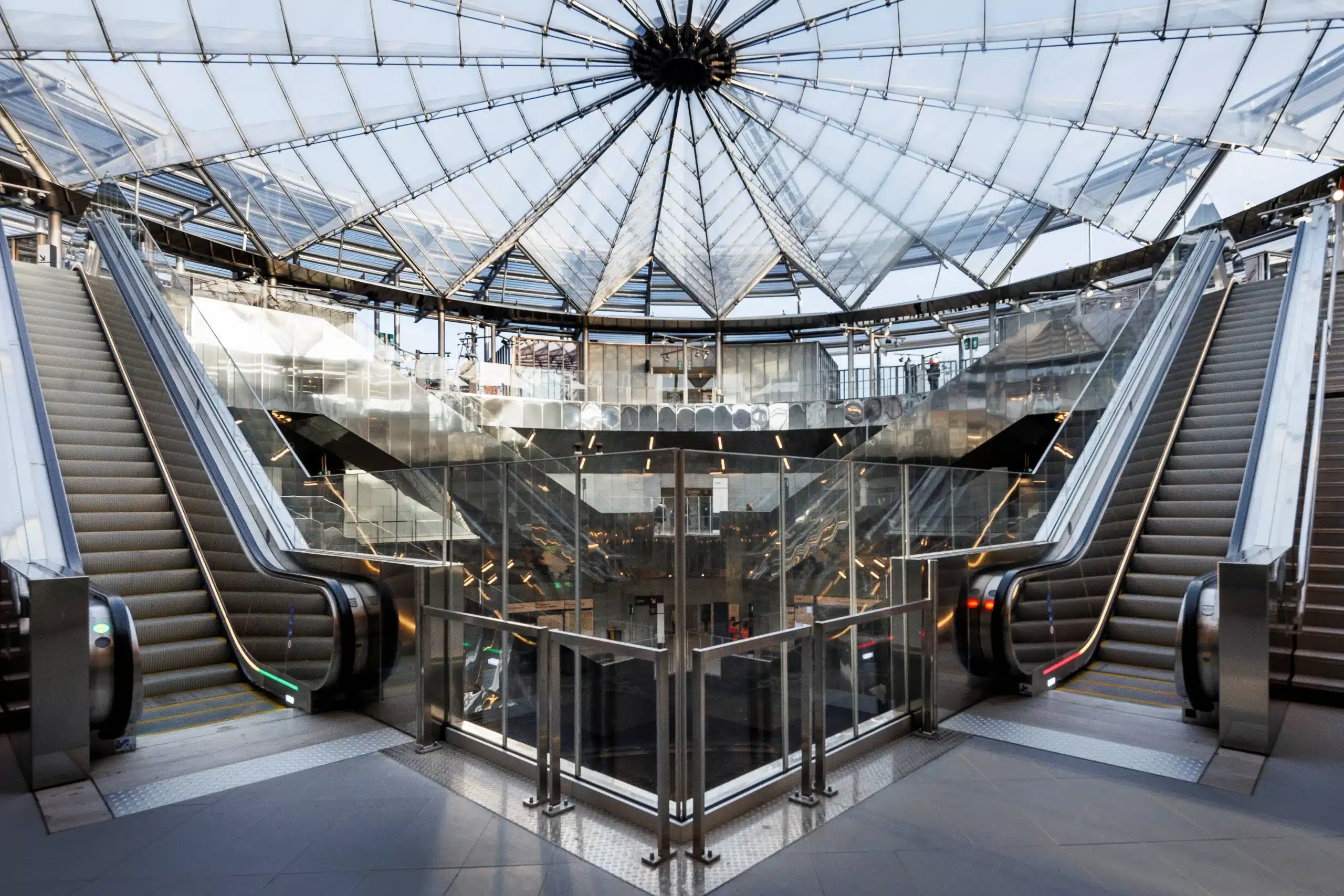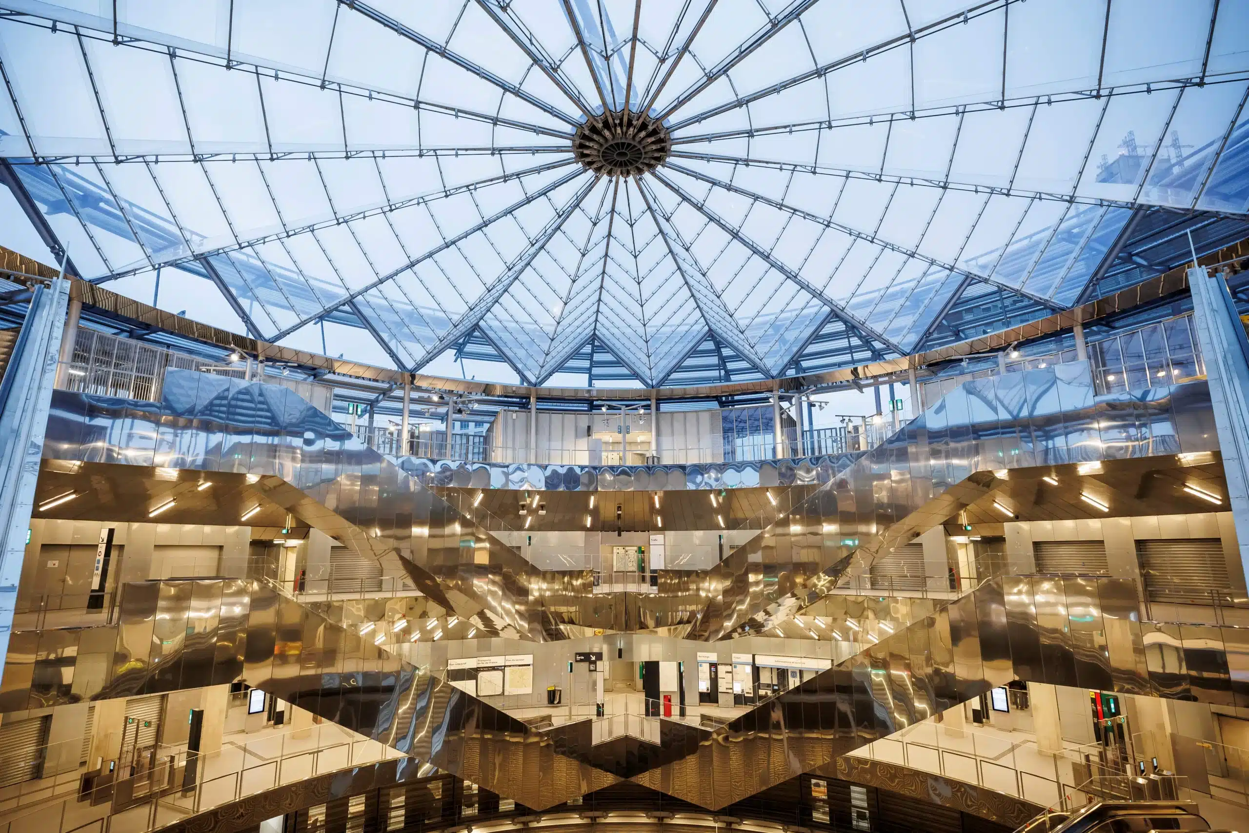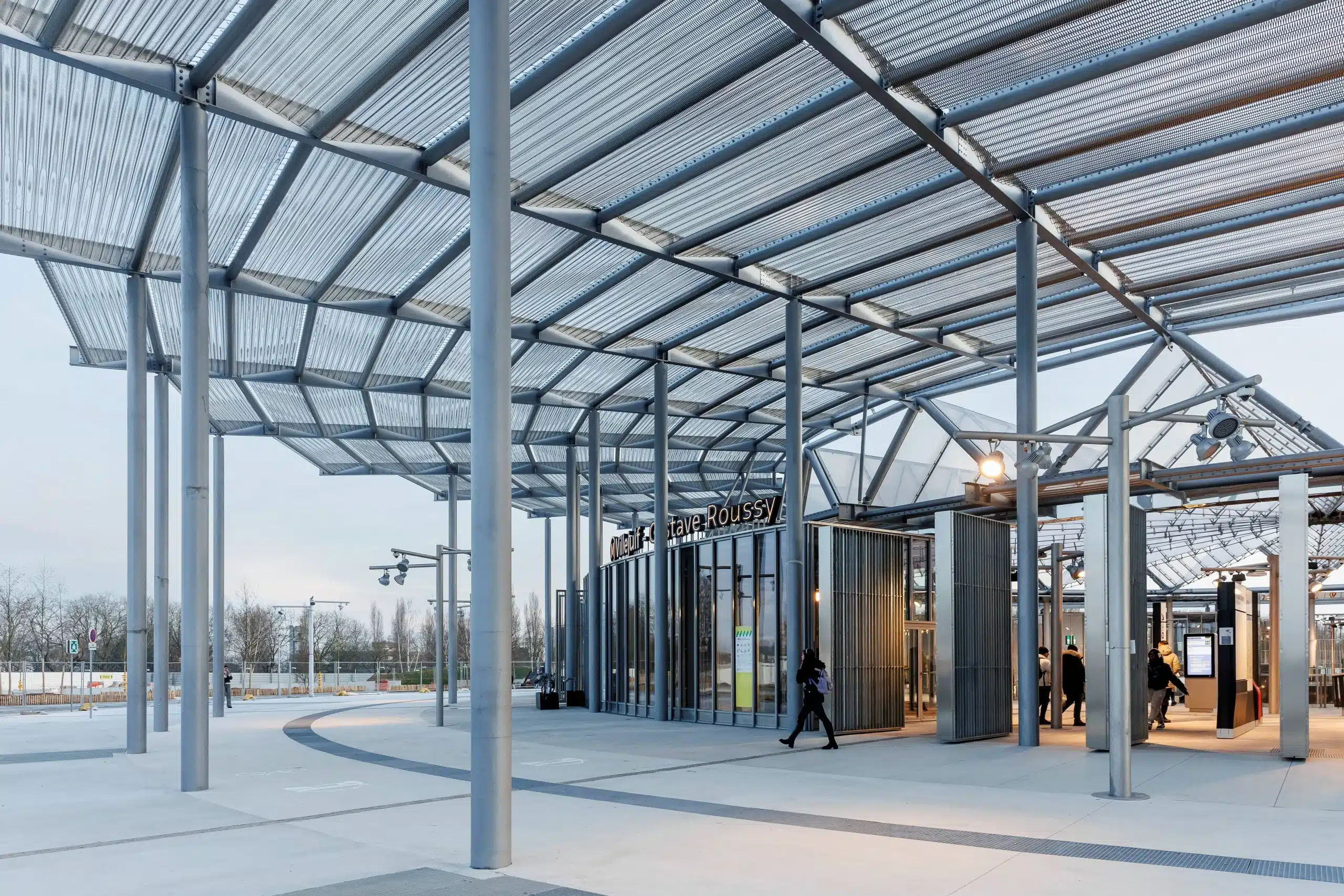 Elle s’enfonce à près de 50 m sous terre autour d’un immense cylindre baigné de lumière naturelle lui conférant une superbe esthétique. Située à côté de l’Institut Gustave Roussy, elle transforme l’accès quotidien de milliers de voyageurs tout en devenant un nouveau pôle de vie et de mobilité dans le Val-de-Marne.