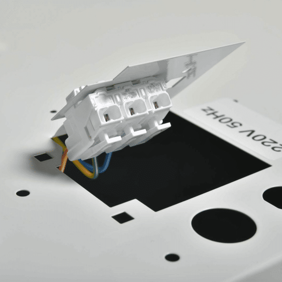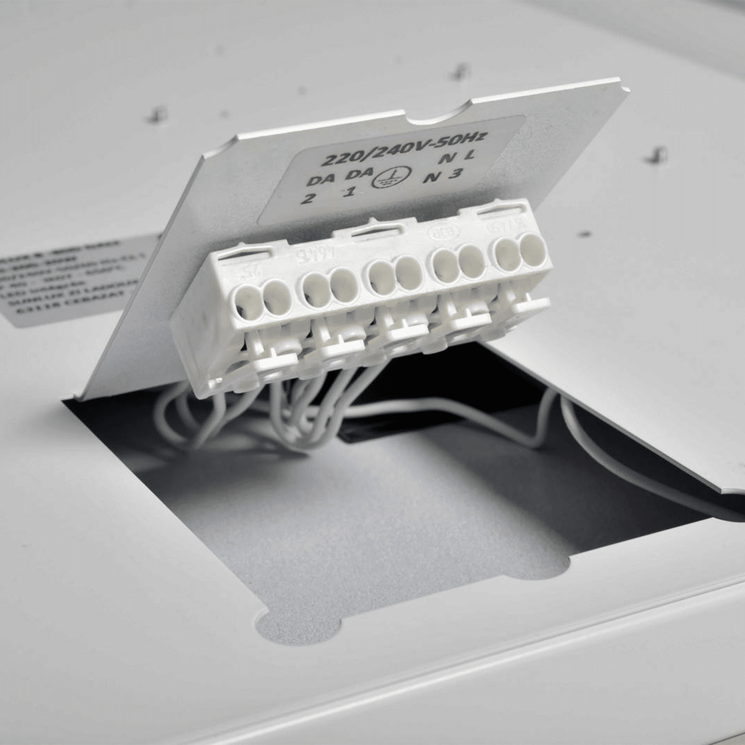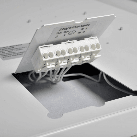 – Caisson en acier poudré blanc RAL 9003 (option noir)